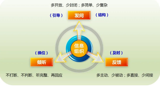一次有效的溝通,通常需要四種技巧來保障:信息組織、發(fā)問、傾聽、反饋。其中,信息組織是基礎,也是有效溝通的前提。為簡化問題,本文只針對一對一的溝通情境。