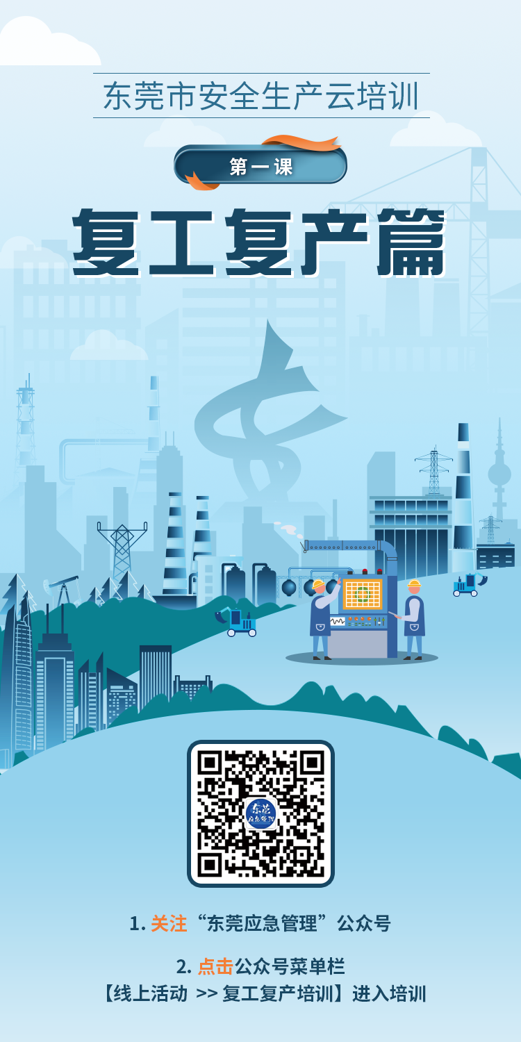 春節(jié)后復(fù)產(chǎn)復(fù)工階段,屬于各類生產(chǎn)安全事故易發(fā)高發(fā)時期,為全面貫徹落實上級關(guān)于做好當前安全生產(chǎn)工作的系列決策部署及春節(jié)假期后安全復(fù)工復(fù)產(chǎn)的工作會議精神,切實抓好節(jié)后復(fù)工復(fù)產(chǎn)各項安全防范工作,堅決防范和遏制較大及以上生產(chǎn)安全事故發(fā)生,根據(jù)《廣東省應(yīng)急管理廳關(guān)于印發(fā)<廣東省應(yīng)急管理廳春節(jié)后復(fù)工復(fù)產(chǎn)安全生產(chǎn)線上線下指導(dǎo)服務(wù)工作方案>的通知》 (粵應(yīng)急辦 (2021) 11 號)、《關(guān)于做好節(jié)后復(fù)工復(fù)產(chǎn)安全防范工作的通知》(粵安辦 (2021) 21 號)等相關(guān)要求,市應(yīng)急管理局決定組織開展安全生產(chǎn)云培訓(xùn)“第一課”——節(jié)后復(fù)工復(fù)產(chǎn)在線培訓(xùn)活動。